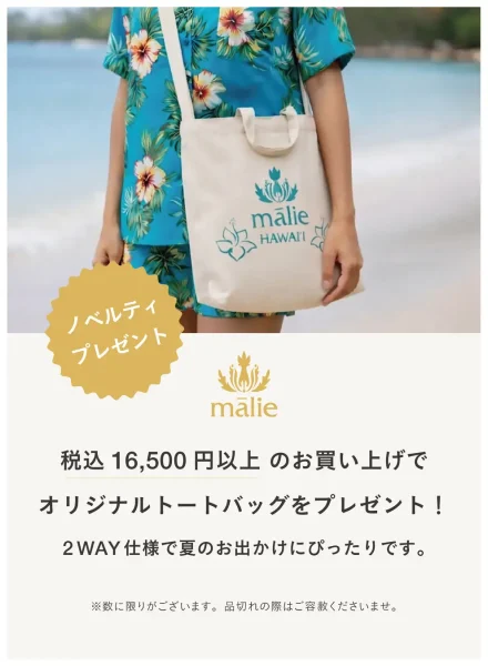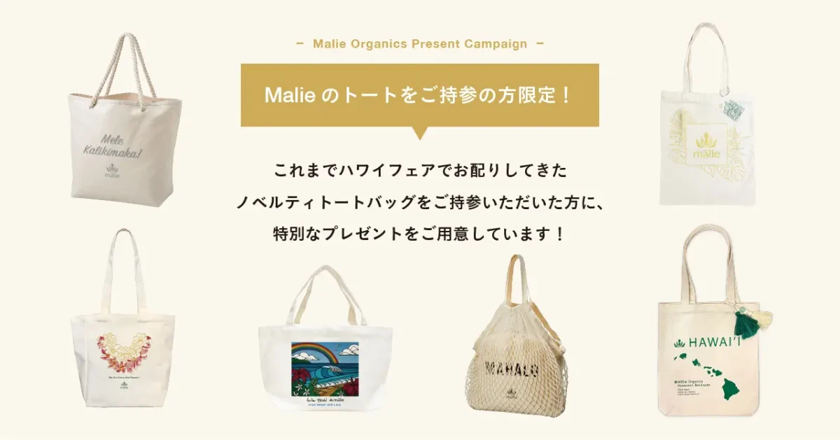 さらに、2019年~2025年に配布したトートバッグをご持参いただいた”Malie Lover”の皆さまには、ささやかなギフトをご用意しております!