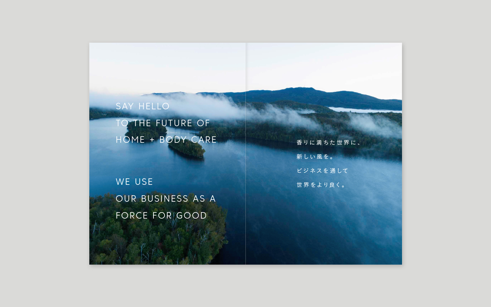 本カタログでは、創業者の想いやブランドの使命がまっすぐに伝わるよう、クリーンで自然を感じさせながらも印象的なビジュアルで構成。ブランドの掲げる「サステナビリティの新しいスタンダード」を、静かな力強さとともに表現しました。