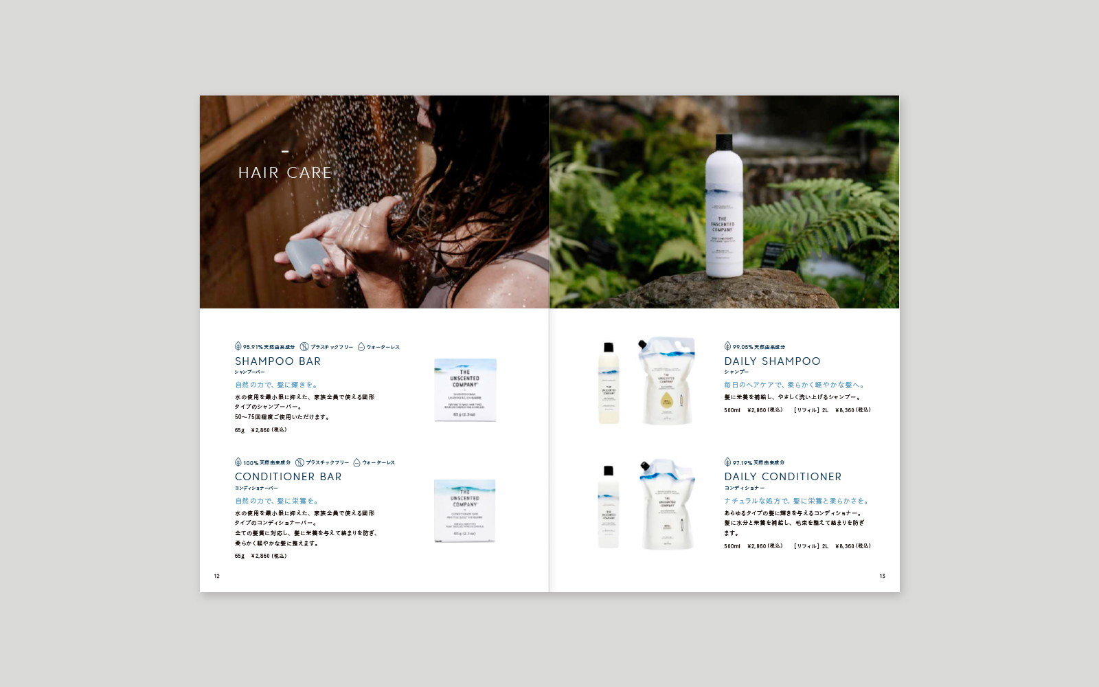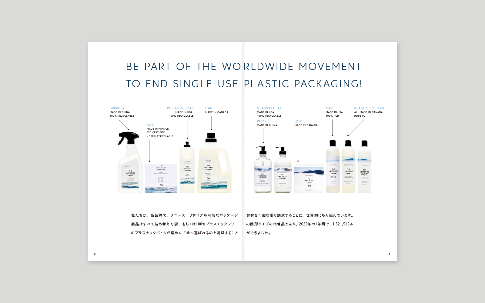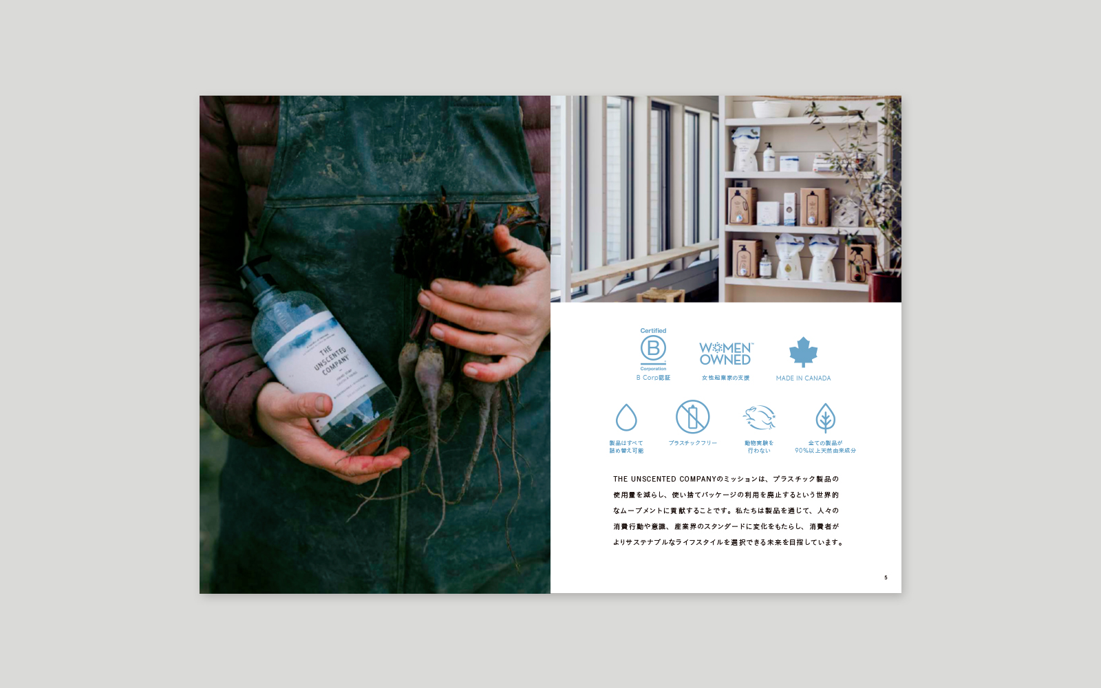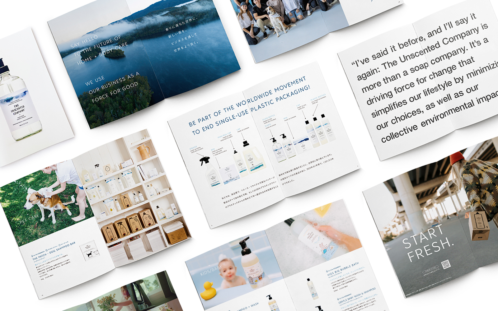 カナダ発のサステナブルなホーム&ボディケアブランド「THE UNSCENTED COMPANY」のカタログデザインを担当しました。